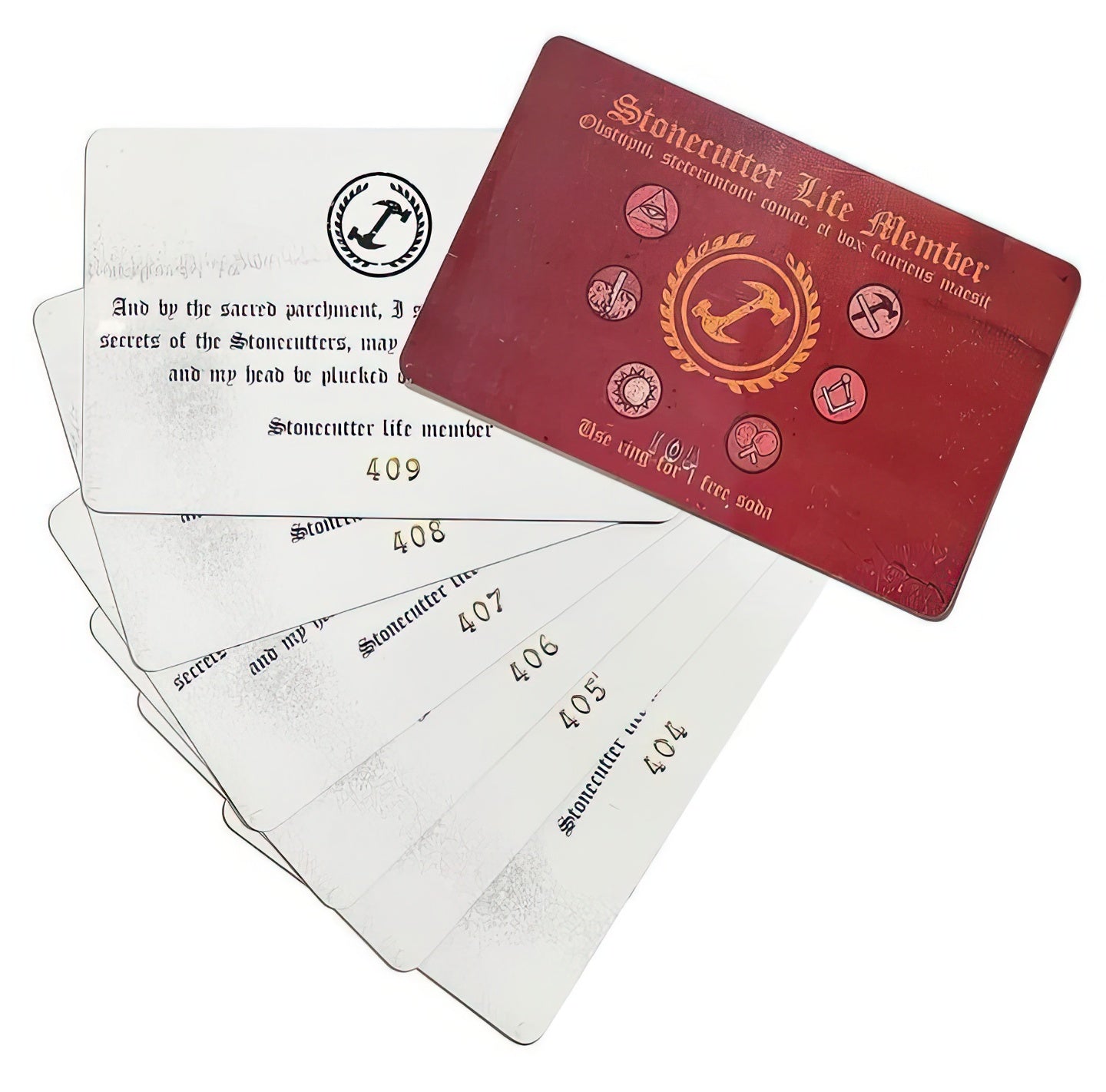 Comes with numbered Stonecutter member card - Wallet sized.